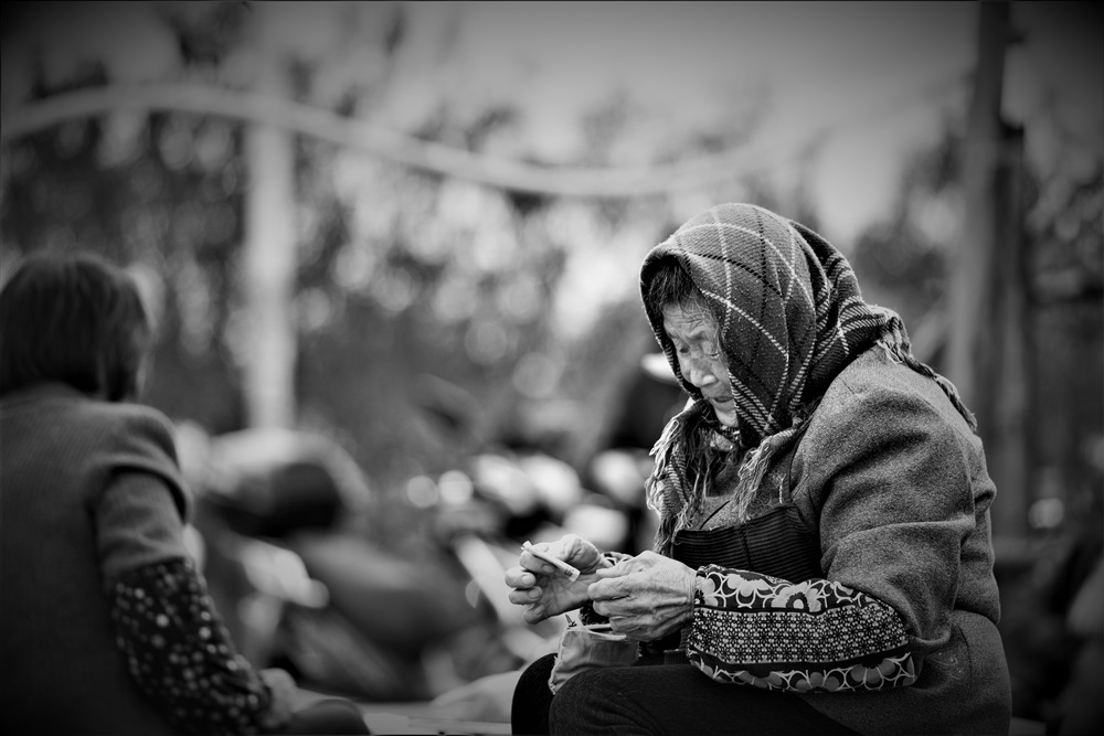 买菜农人收获现金的喜悦
