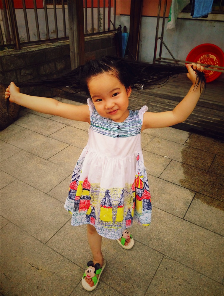 母亲给小外甥女洗完头开心