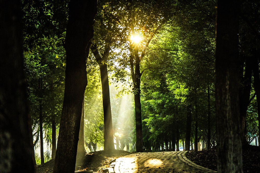 早上到公园,看到一夕朝阳,用镜头记录下此时刻