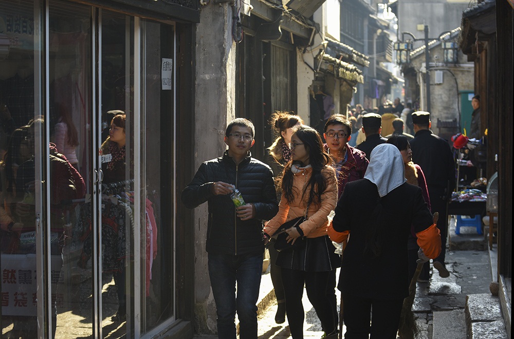 元旦的千灯古镇,游客暴满,每条古巷都笑语连连.